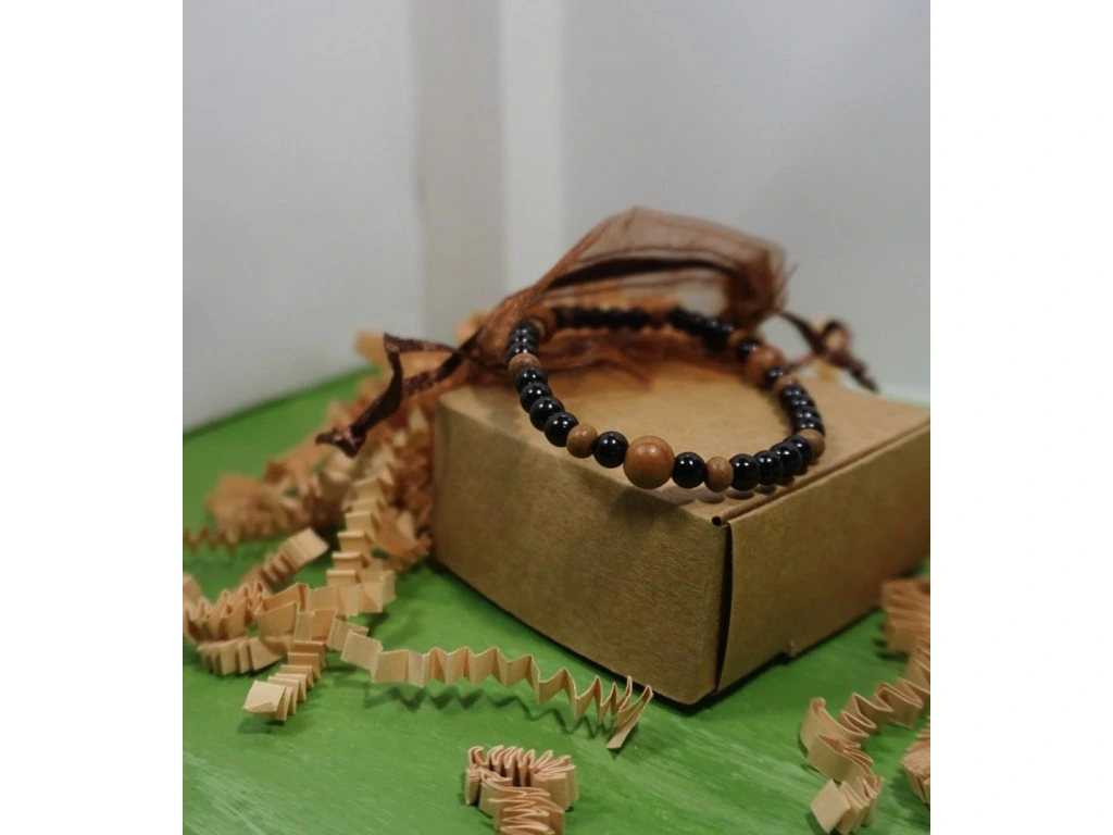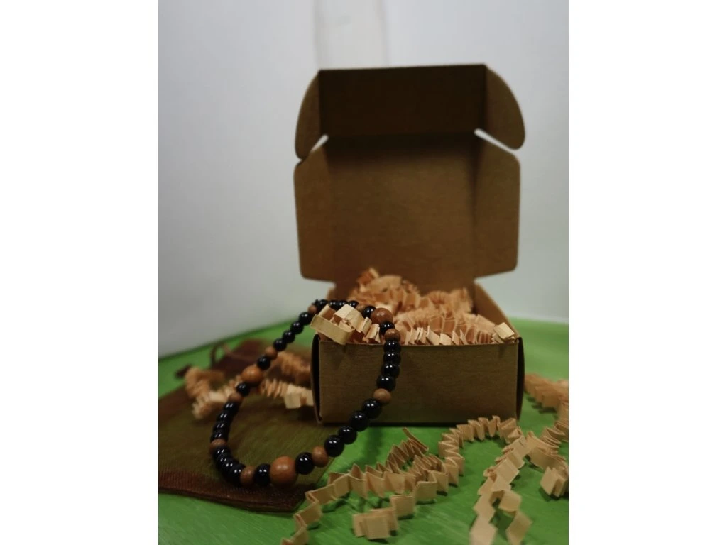 Černé akrylové korálky dodávají náramku moderní eleganci a lesklý povrch, zatímco dřevěné korálky přinášejí přírodní teplo a autentický charakter. Tato kombinace činí náramek Black&Wood perfektním doplňkem pro ty, kteří oceňují jak současný design, tak spojení s přírodou.
