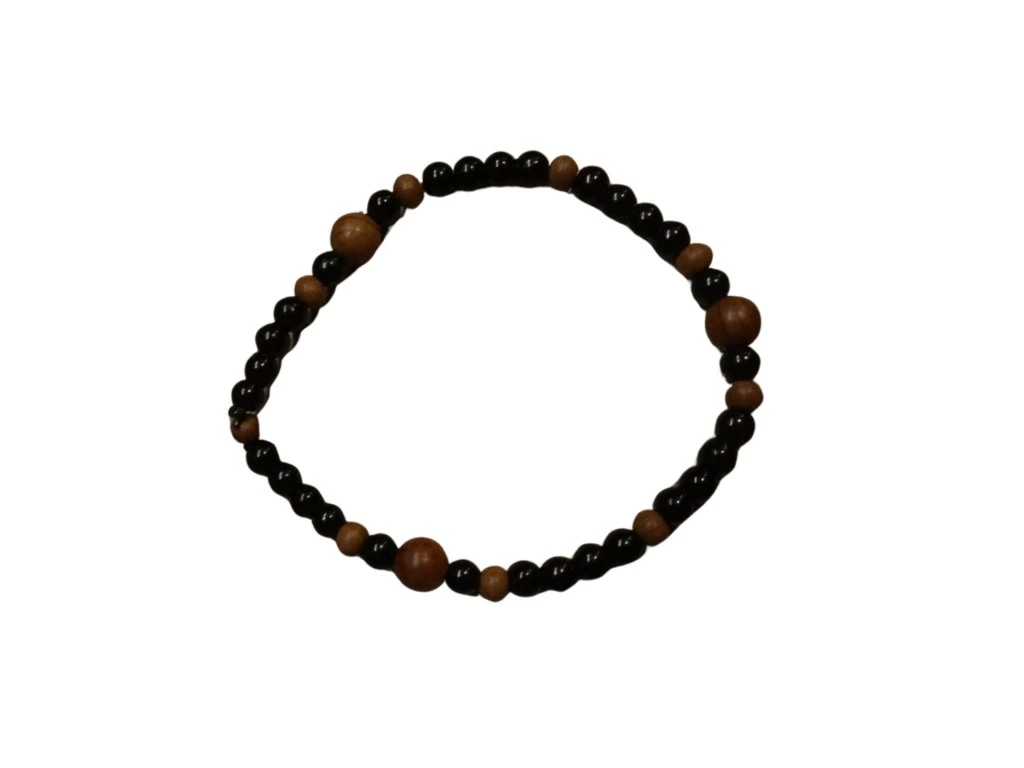 Elegantní náramek v kombinaci lesklých černých akrylových korálků a přírodních dřevěných korálků. Dokonalé spojení moderního designu s přírodními materiály pro každodenní nošení. Jednoduchý náramek, který se hodí i pro pány.